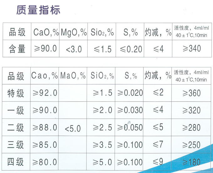 產(chǎn)品含鈣量高,質(zhì)量符合各項(xiàng)技指標(biāo)